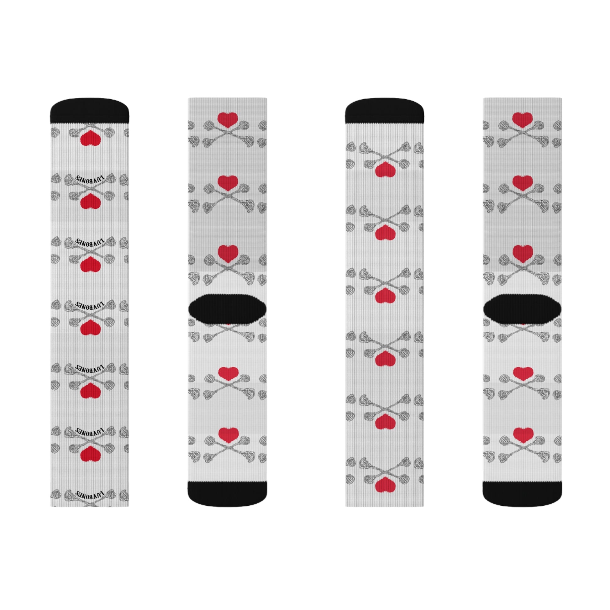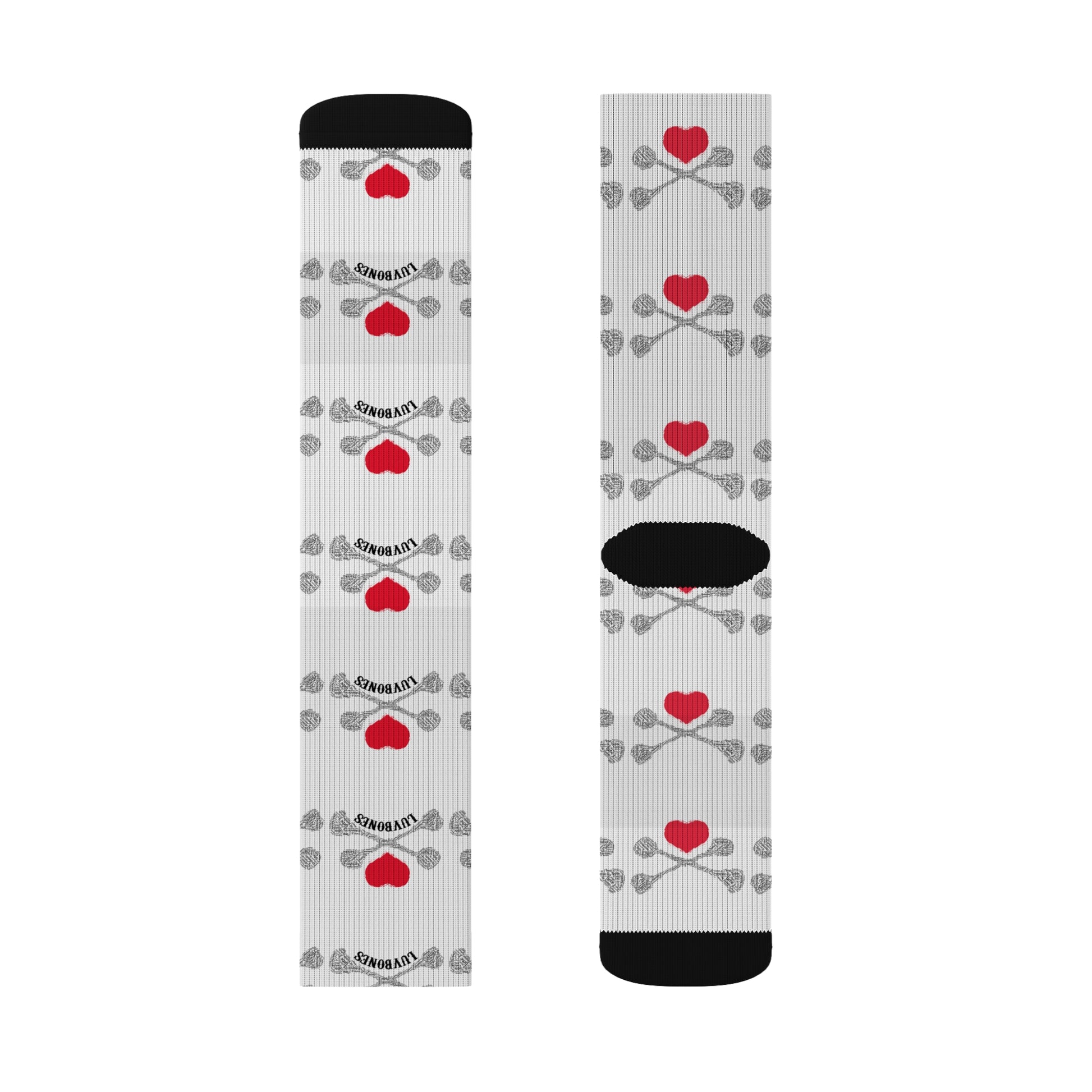 Luvbones - Hearts & Crossbones Patterned Sublimation Socks, Fun Gift for Couples, Cozy Footwear for Home, Valentine's Day, Unique Sock Design, Everyday Wear
