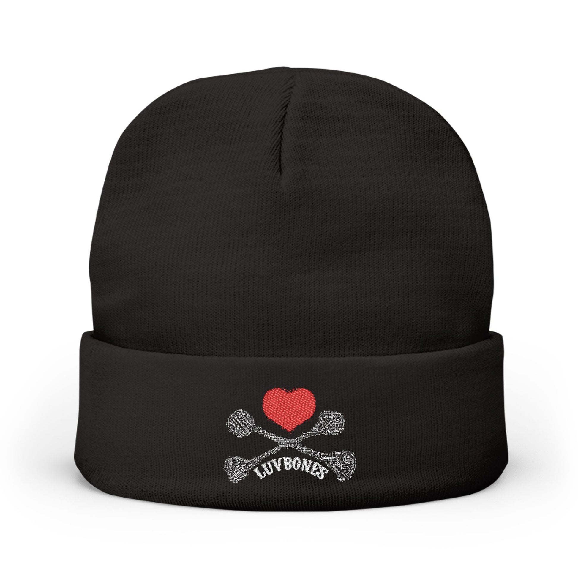 Luvbones - Hearts & Crossbones Knit Beanie, Warm Winter Hat, Casual Headwear, Skull Beanie, Gifts for Him/Her